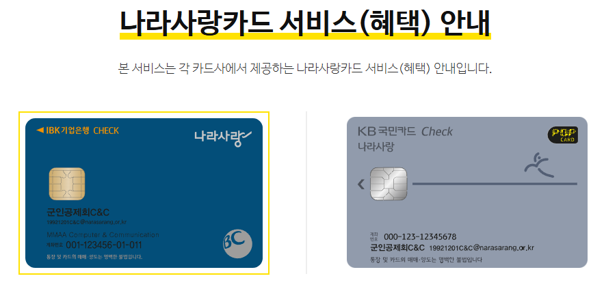| 혜택항목 | KB국민 나라사랑카드 | IBK기업 나라사랑카드 | |